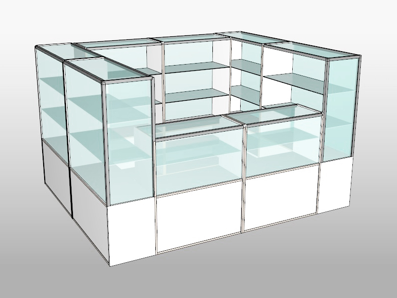 Из таких витрин собираются целые островные отделы в торговых залах или используются как пристенные.